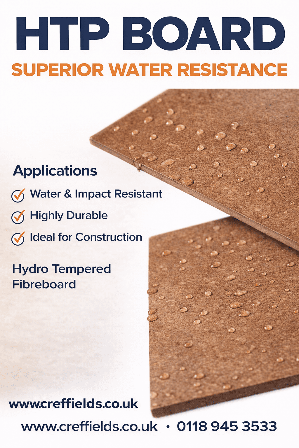 Creffields Timber & Boards has long been known as a trusted supplier of engineered wood panels, including chipboard, hardboard, plywood, and a wide range of MDF products. In response to growing demand for moisture-resistant and robust sheet materials, Creffields now stocks HTP Hydro Tempered High-Density Fibreboard, bringing this advanced board directly to customers across the UK.
